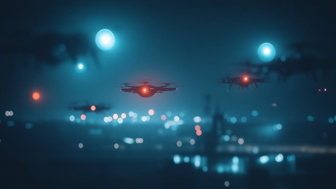 Os drones foram detectados ao anoitecer e eram “maiores do que os drones comerciais comuns”, disse o porta-voz.