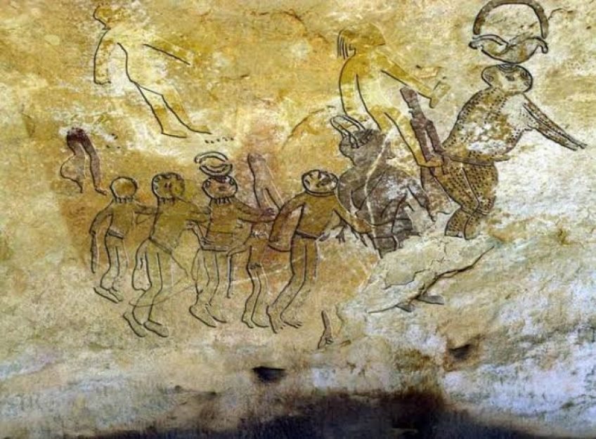 Muitos sítios apresentam pinturas de humanos e animais em cenas cotidianas. No entanto, alguns pesquisadores se referiram a pinturas mais incomuns, como aquelas que parecem representar cangurus e girafas, que não são nativos do país, bem como criaturas híbridas de humanos e peixes. Agora, afirma-se que alienígenas e OVNIs podem ser adicionados a essa coleção.